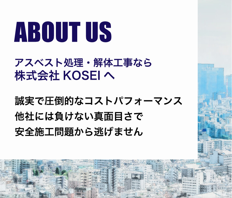 株式会社光生は、まず安全を第一に考えお客様のニーズに応え、 更には地球環境改善や地域社会に貢献させていただきたいと考えております。 主にアスベスト除去工事、アスベスト含有の塗装材などの剥離・洗浄工事、 煙突内部石綿除去、内装材の解体工事などを承っております。